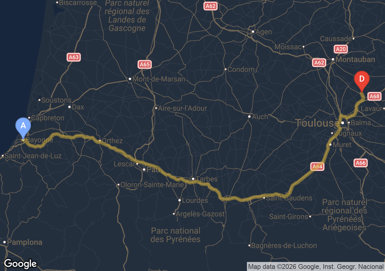 Durée du trajet Bessieres → Bayonne ?