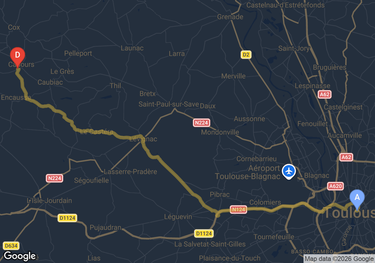 SSINT VTC assure votre trajet Cadours → Toulouse en Tesla Model 3. Depuis Cadours, commune de l'agglomération toulousaine élargie, la route rejoint Toulouse directement en 39 km et environ 58min. Tarif fixe confirmé avant départ. Idéal pour gare Matabiau, aéroport Blagnac ou Capitole.