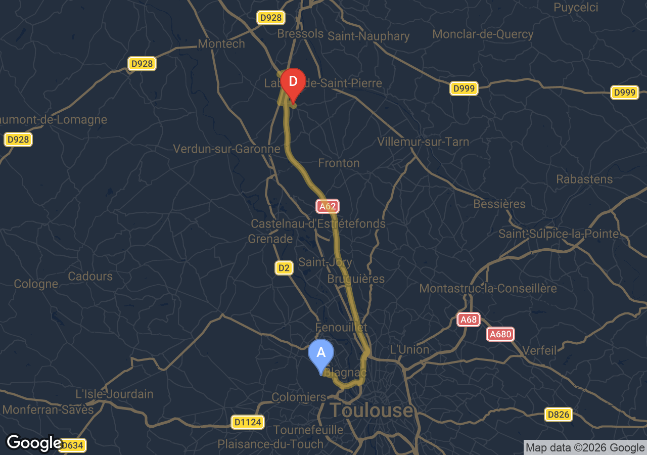 Disponible 24 h/24, 7j/7 pour votre trajet Campsas → Aéroport Toulouse-Blagnac en toute sécurité et confort