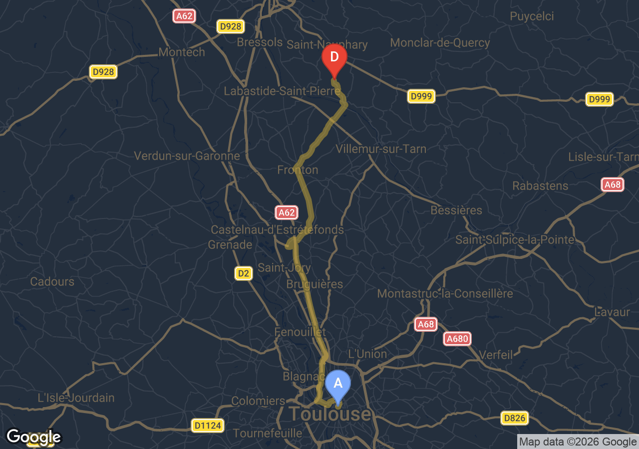 SSINT VTC assure votre trajet Canals → Toulouse en Tesla Model 3. Depuis Canals, commune à proximité de Toulouse, la route rejoint Toulouse directement en 51 km et environ 1h16min. Tarif fixe confirmé avant départ. Idéal pour gare Matabiau, aéroport Blagnac ou Capitole.