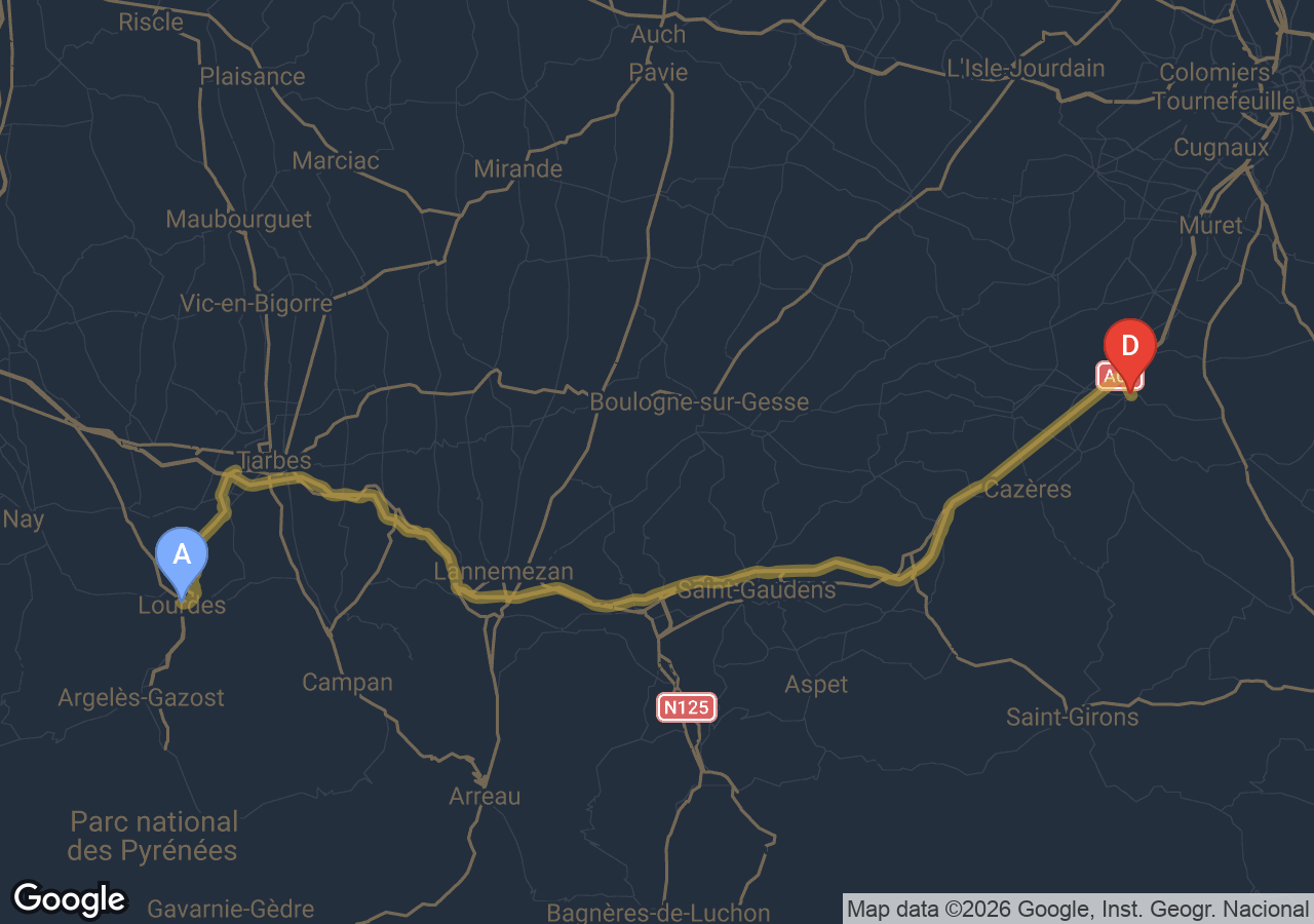 Durée du trajet Carbonne → Lourdes ?