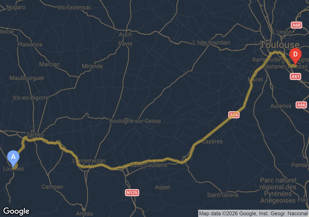 • Trajet direct Escalquens → Lourdes en Tesla Model 3