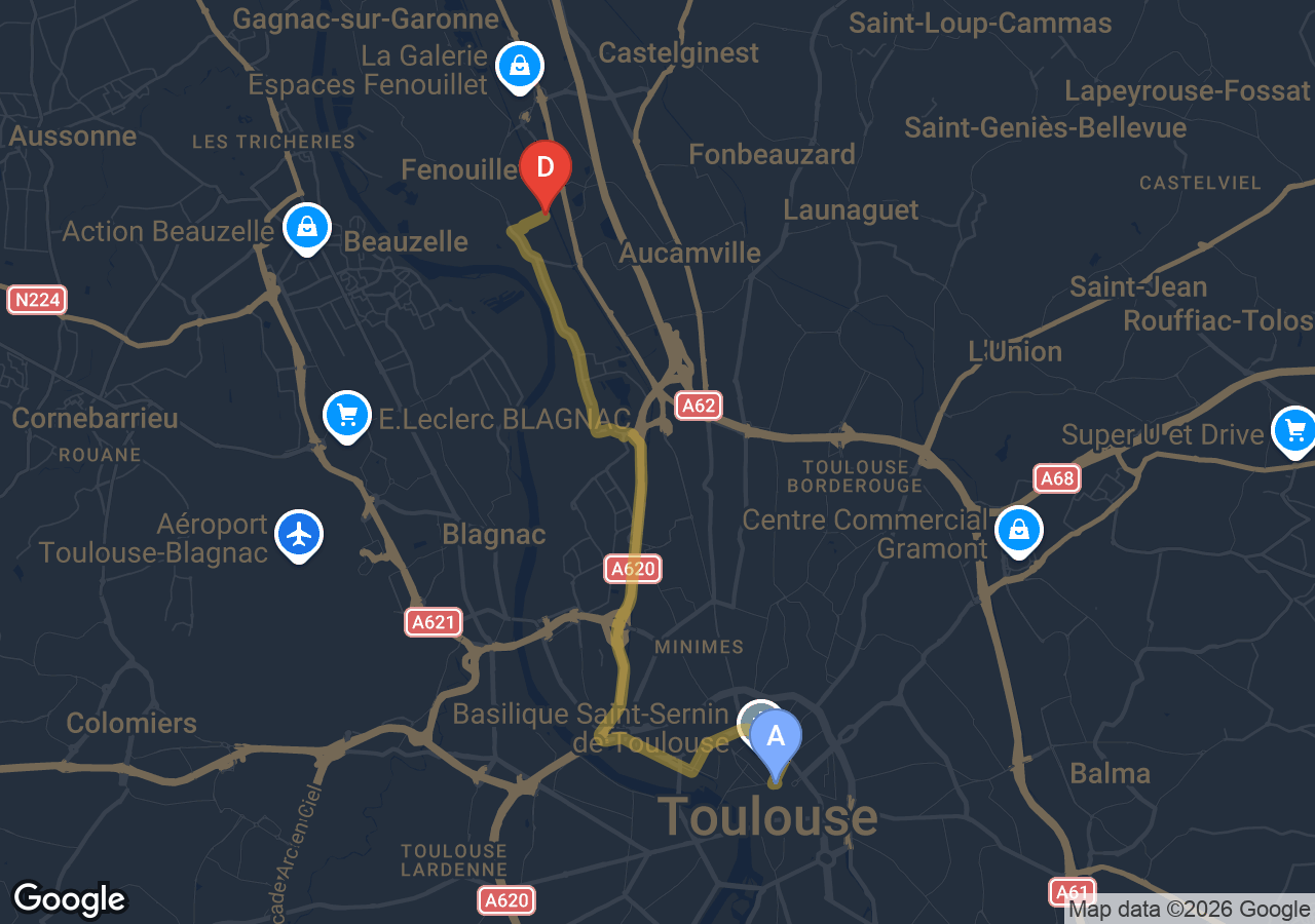 Transport vers l'aéroport de Toulouse-Blagnac.