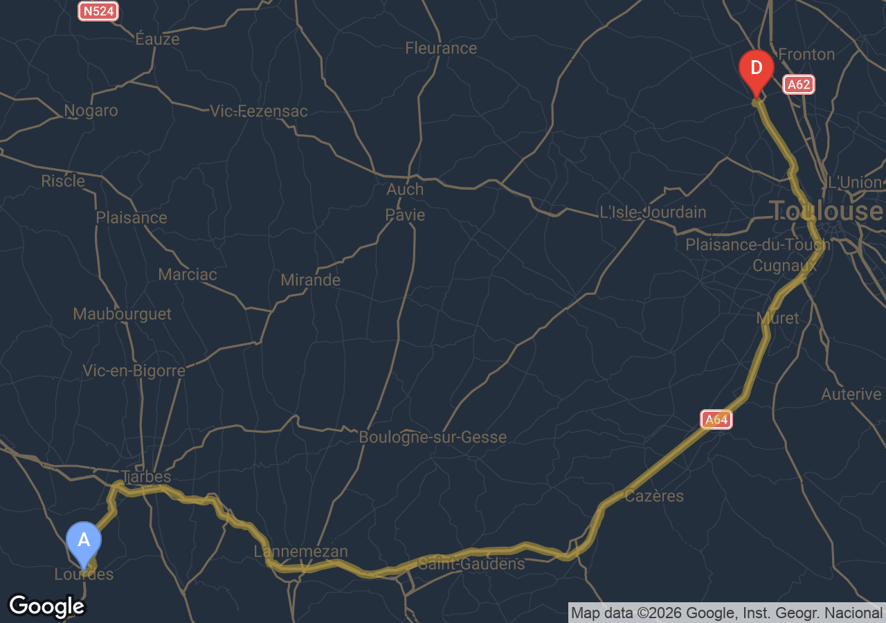 Durée du trajet Grenade → Lourdes ?