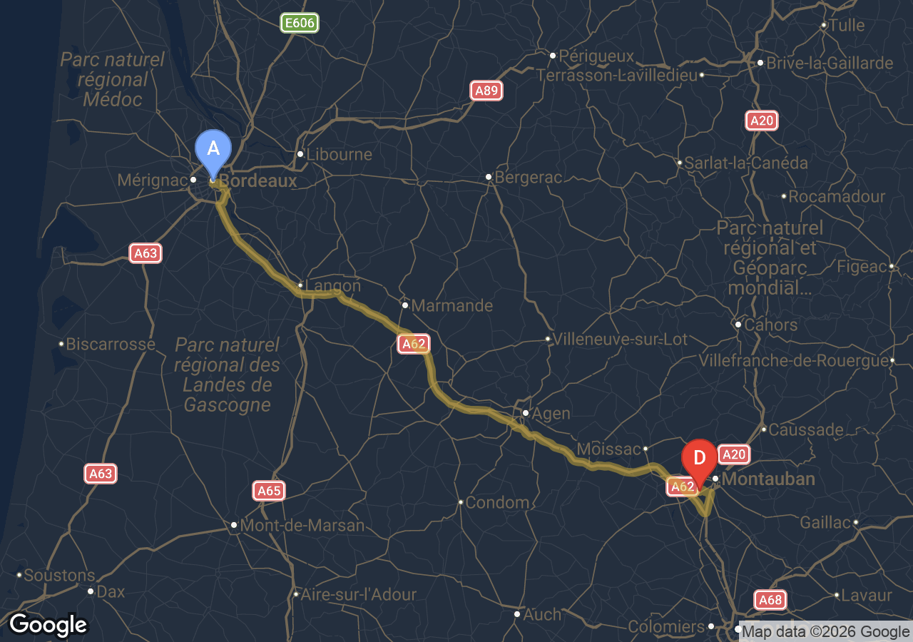 • Tarif fixe 348 € TTC — péage A62 inclus