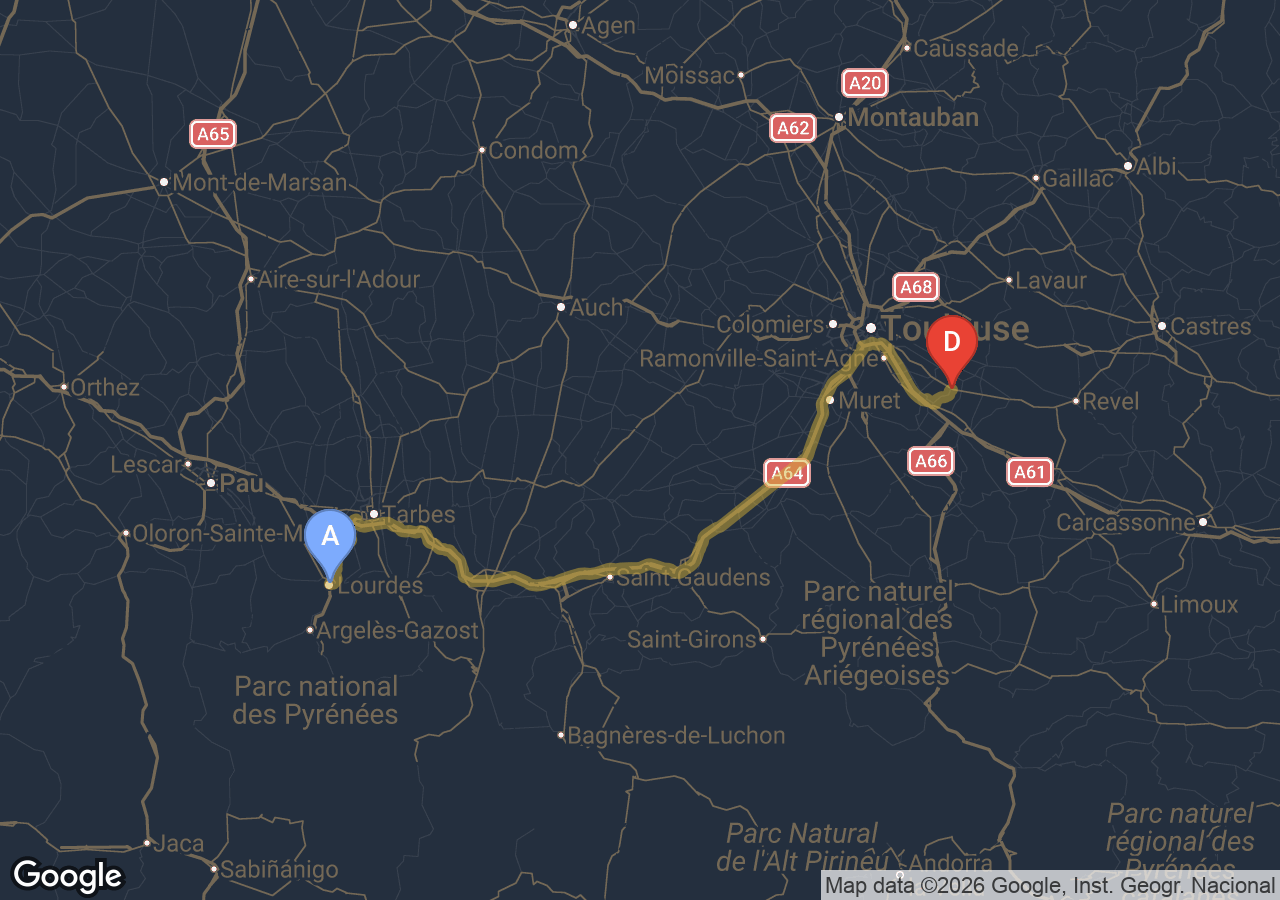 Durée du trajet Labastide-Beauvoir → Lourdes ?