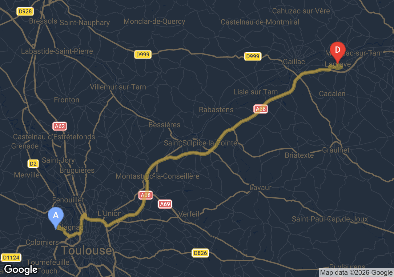 Trajets importants (Bordeaux, Carcassonne, Narbonne, Andorre...).