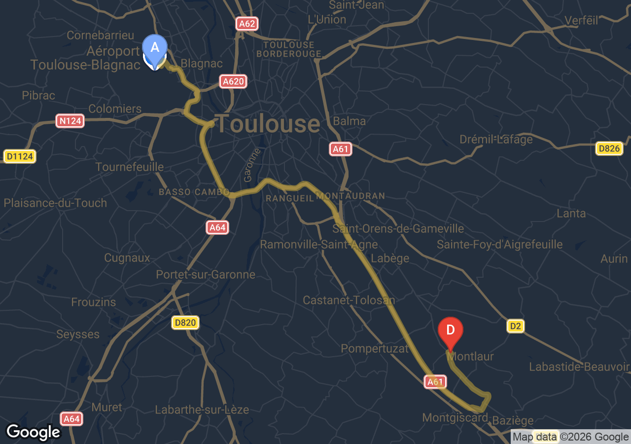 MONTLAUR → AÉROPORT TOULOUSE-BLAGNAC