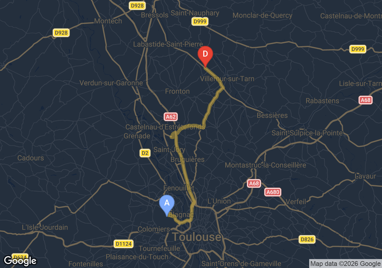 Disponible 24 h/24, 7j/7 pour votre trajet Nohic → Aéroport Toulouse-Blagnac en toute sécurité et confort