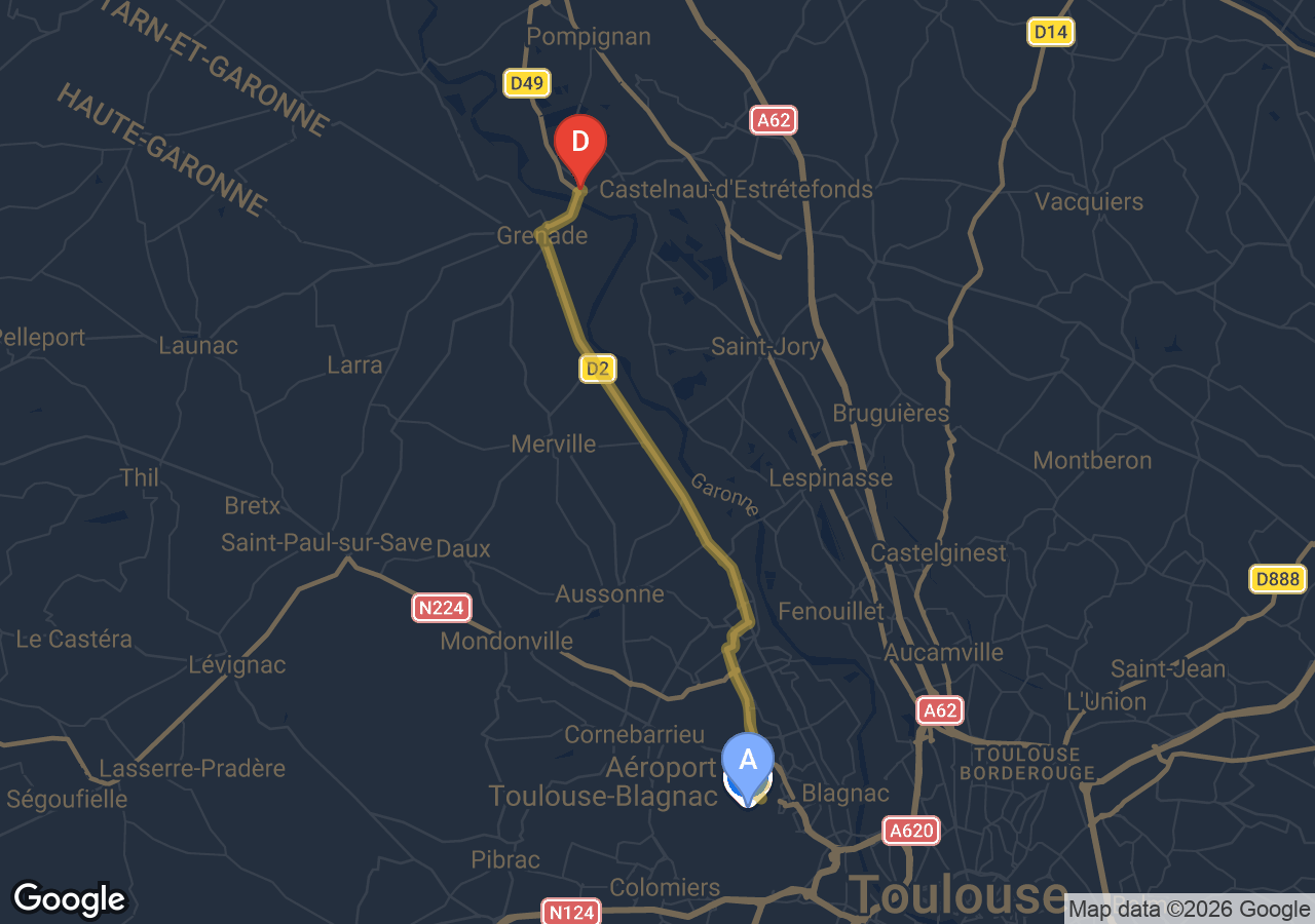 Transport vers l'aéroport de Toulouse-Blagnac.