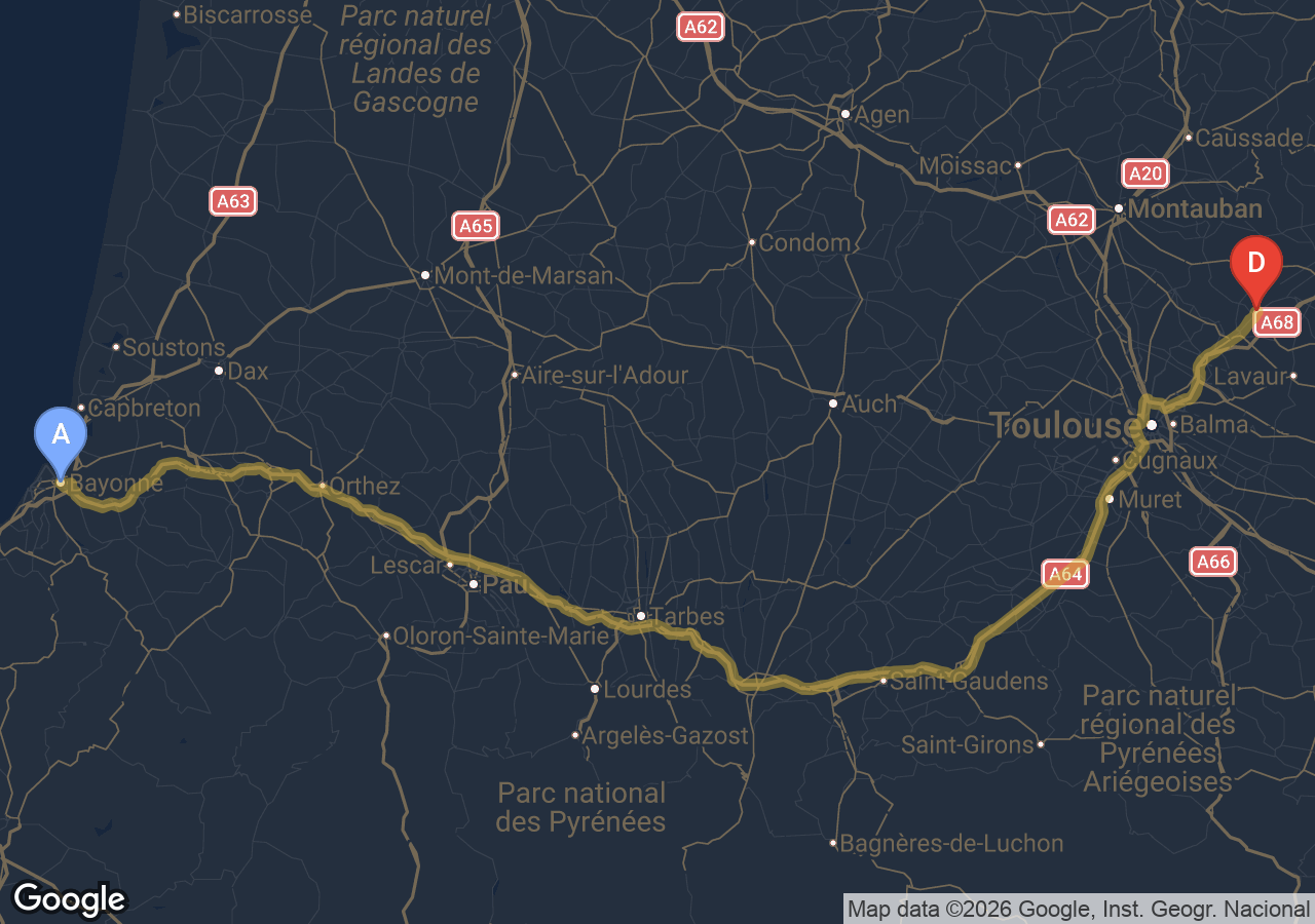 Durée du trajet Rabastens → Bayonne ?