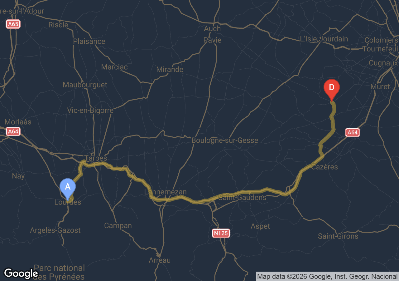 Durée du trajet Rieumes → Lourdes ?