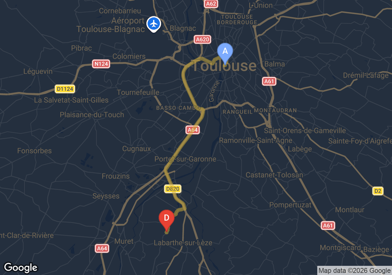 Transport vers l'aéroport de Toulouse-Blagnac.