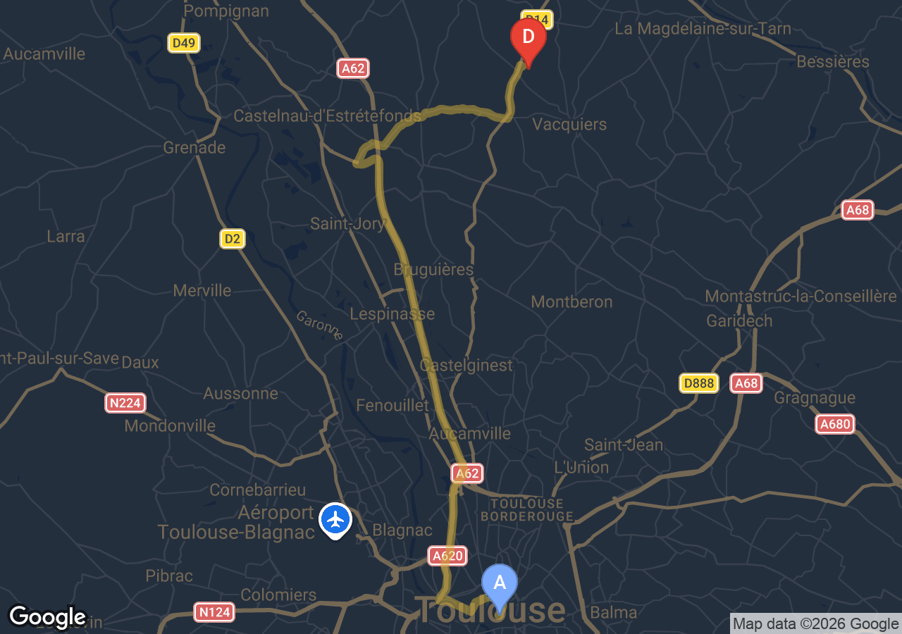 Disponible 24 h/24, 7j/7 pour votre trajet Villeneuve-lès-Bouloc → Toulouse en toute sécurité et confort